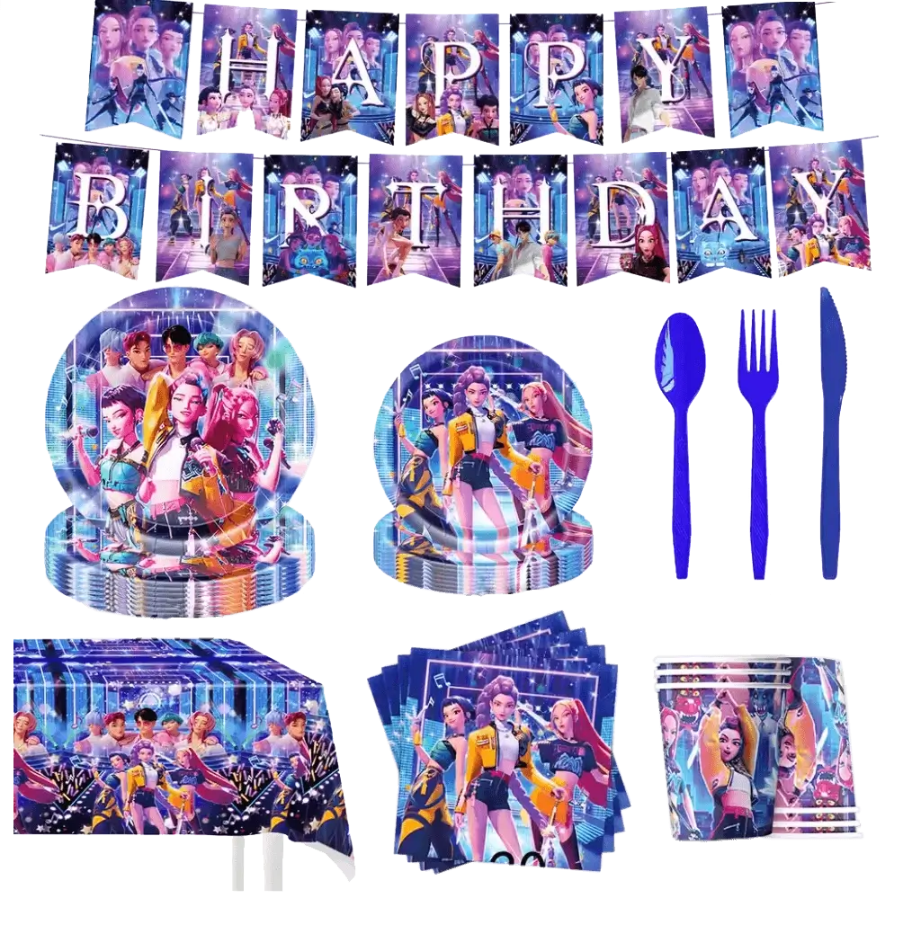 Rinkinį sudaro įvairūs popieriniai stalo reikmenys, tokie kaip lėkštės, puodeliai, šiaudeliai, servetėlės, staltiesė, įrankiai, balionai, girliandos bei torto dekoracijos – viskas, ko reikia išskirtinei šventės atmosferai sukurti. Visi gaminiai pagaminti iš popieriaus. Rinkinyje 10 produktų: