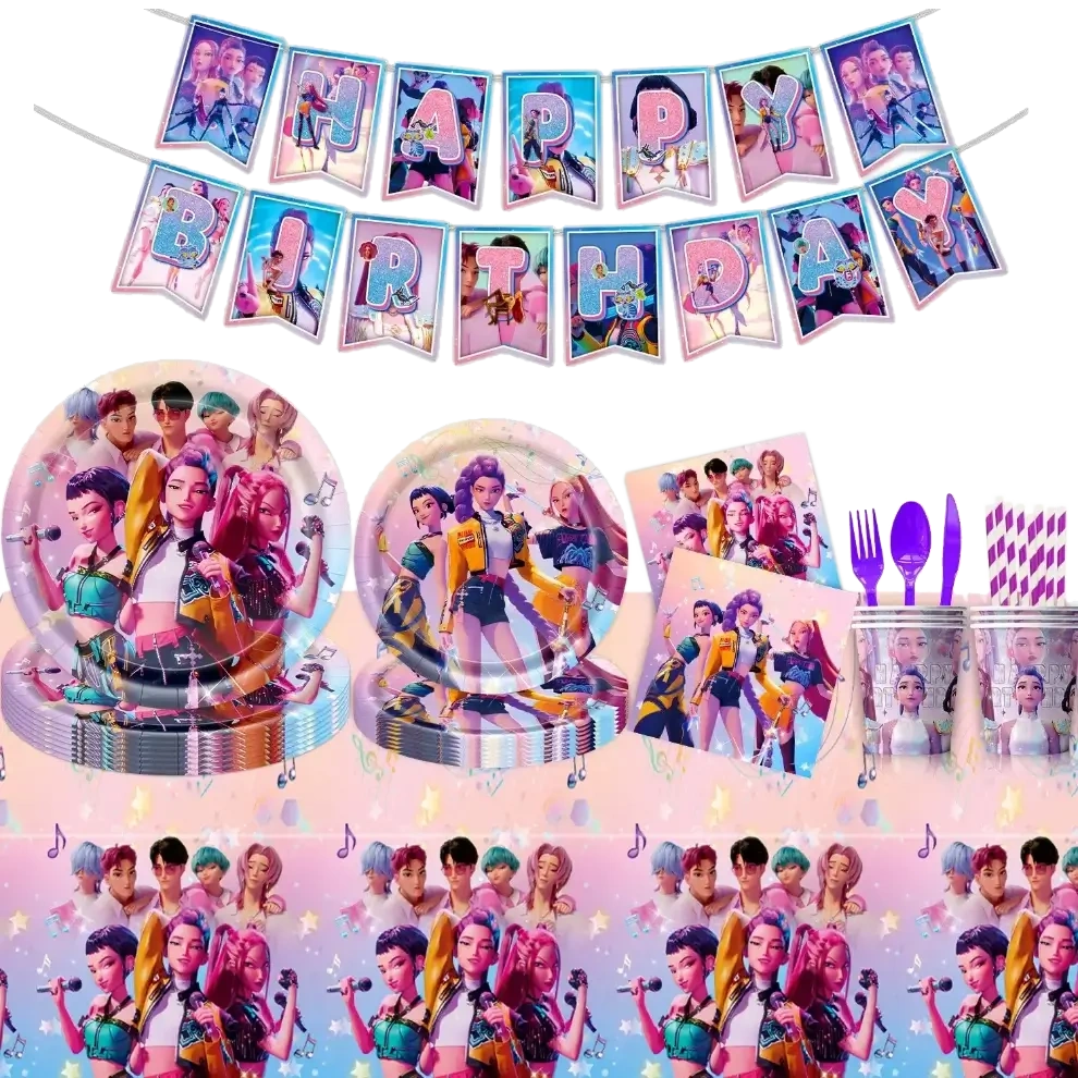 Rinkinį sudaro įvairūs popieriniai stalo reikmenys, tokie kaip lėkštės, puodeliai, šiaudeliai, servetėlės, staltiesė, įrankiai, balionai, girliandos bei torto dekoracijos – viskas, ko reikia išskirtinei šventės atmosferai sukurti. Visi gaminiai pagaminti iš popieriaus. Rinkinyje: