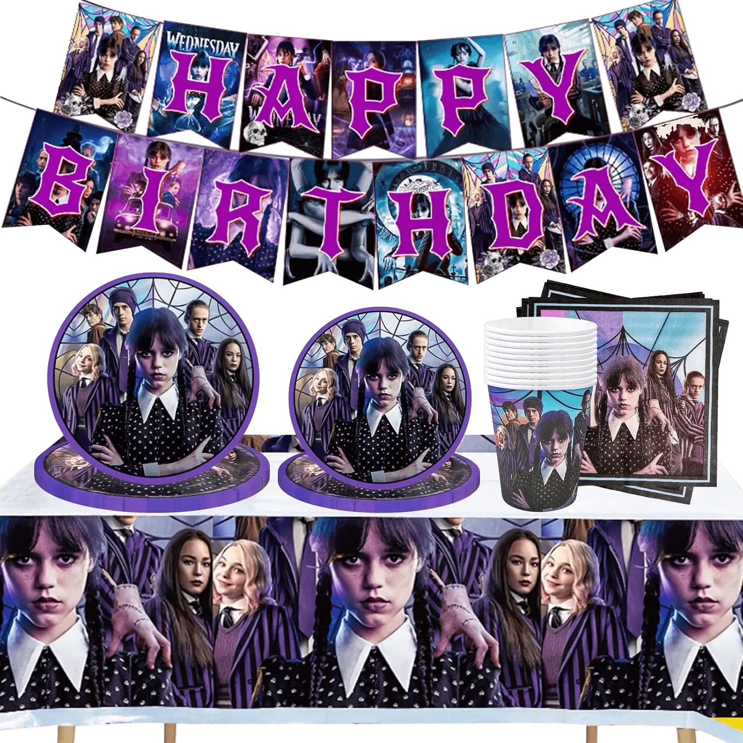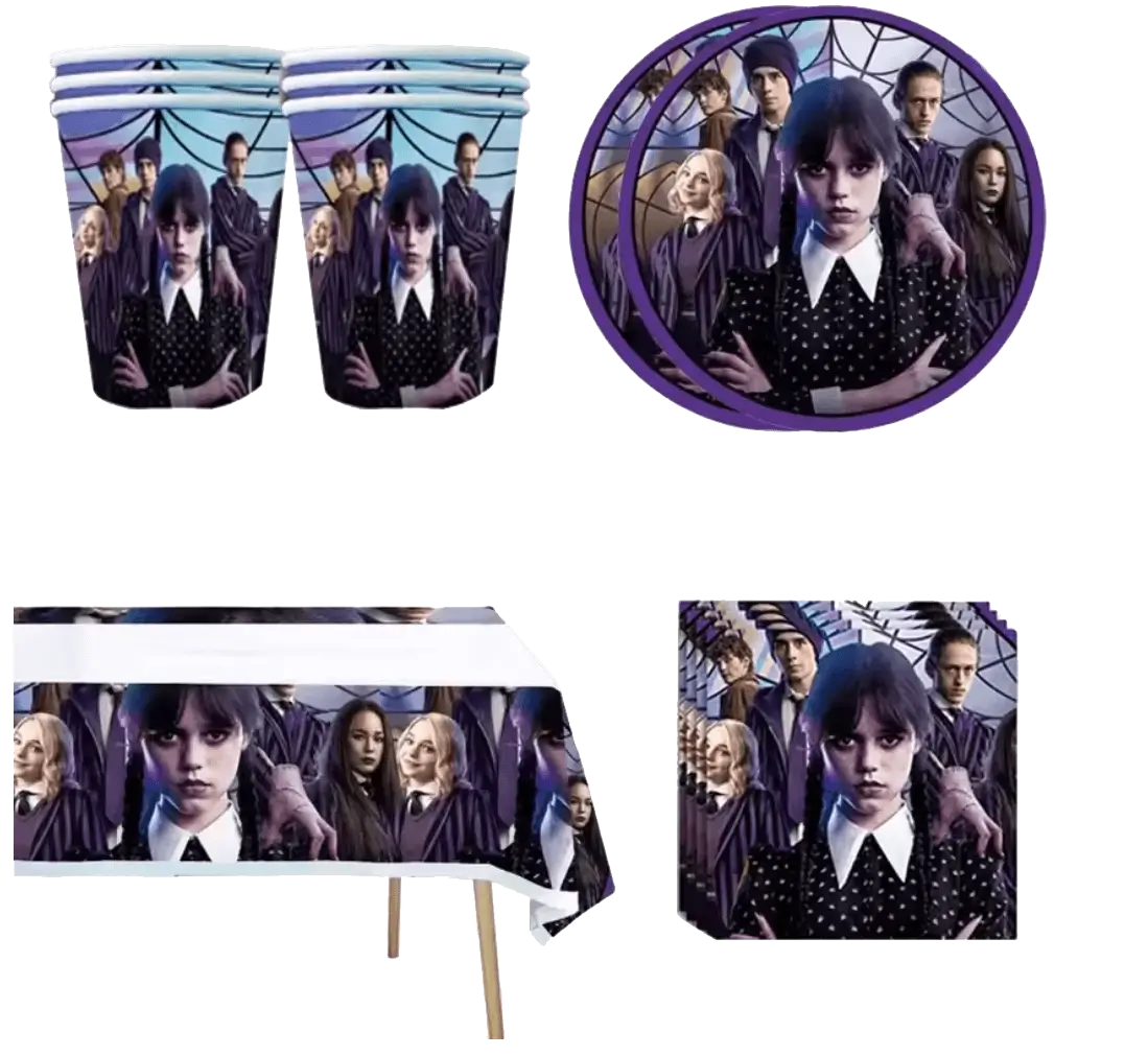 Wednesday gimtadienio stalo reikmenų rinkinys – puikus pasirinkimas teminei vaikų šventei. Rinkinį sudaro popierinės lėkštės, puodeliai, servetėlės, staltiesė ir gimtadienio girlianda – viskas, ko reikia išskirtinei ir stilingai Wednesday atmosferai sukurti. Rinkinyje 5 produktai: